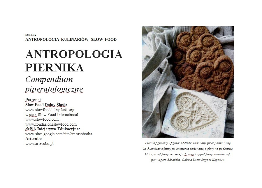 Plik PDF ponad stostronicowej monografii piernikarskiej (piperatologicznej) nt. dolnośląskiego piernika historycznego, tj. wytwarzanego zgodnie z historycznymi recepturami i zwyczajami, z dobrych, czystych, uczciwych, lokalnych składników, bez udziału składników masowych. Monografia zawiera opowieści, historię, typologię i liczne historyczne przepisy kulinarne na pierniki lub potrawy z wykorzystaniem piernika różnego typu.